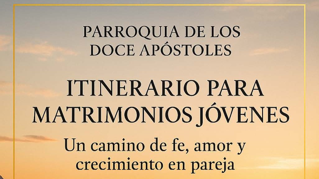 El domingo 26 de octubre vamos a empezar el itinerario de matrimonios jóvenes, que está pensado para preparar, acompañar y ayudar a los matrimonios jóvenes que se hayan casado recientemente. Es un camino de fe, para descubrir juntos la vocación del matrimonio.